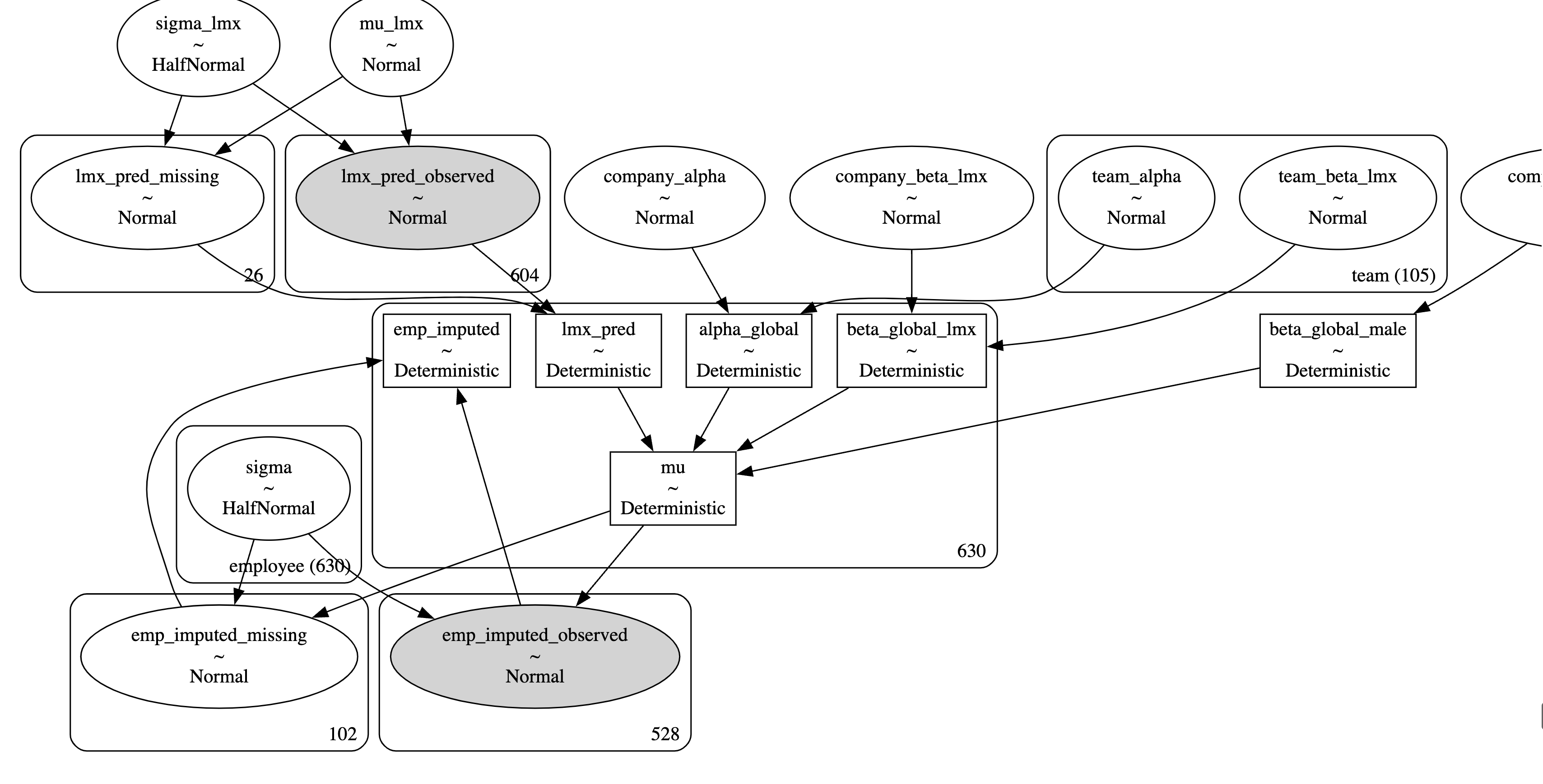 lmx_pred = pm.Normal("lmx_pred", mu_lmx, sigma_lmx, observed=df_employee["lmx"].values)