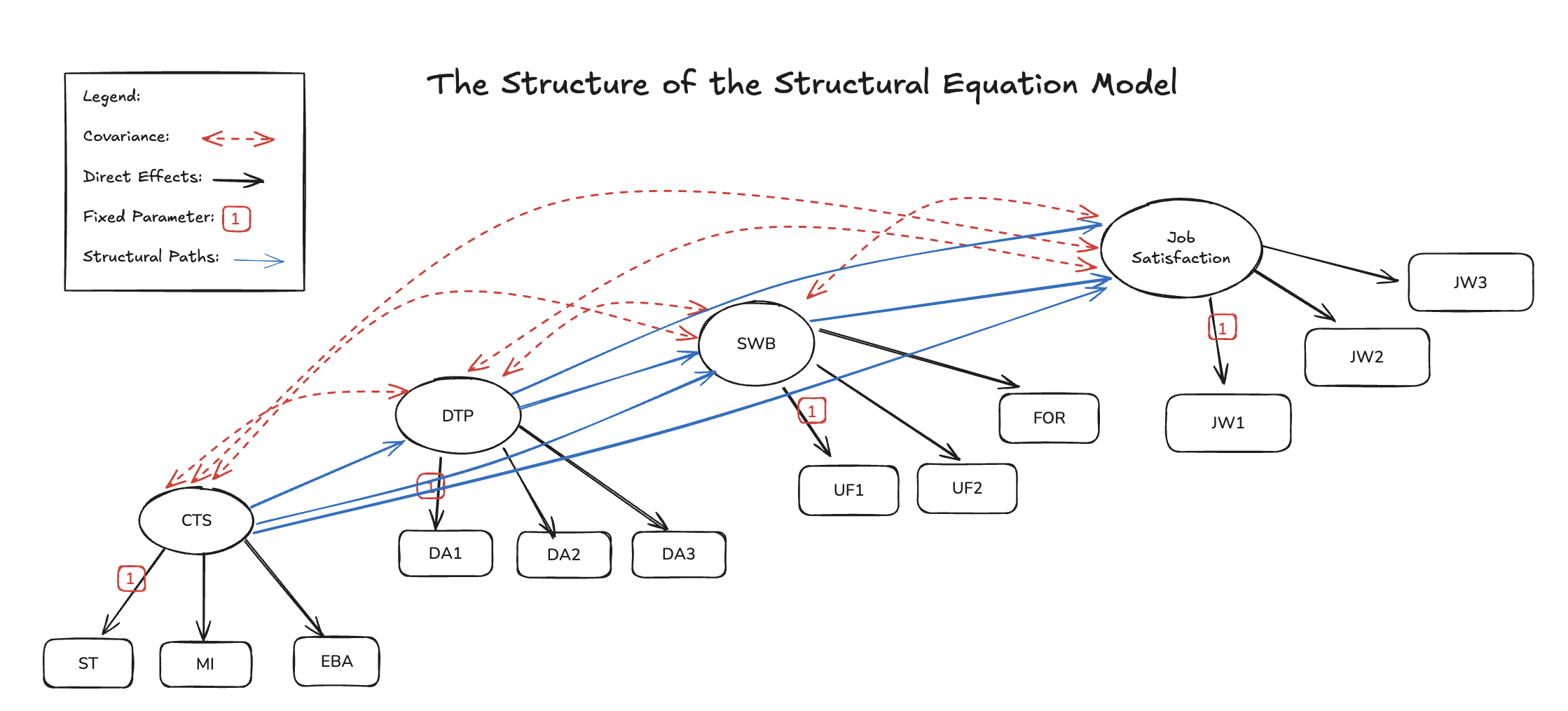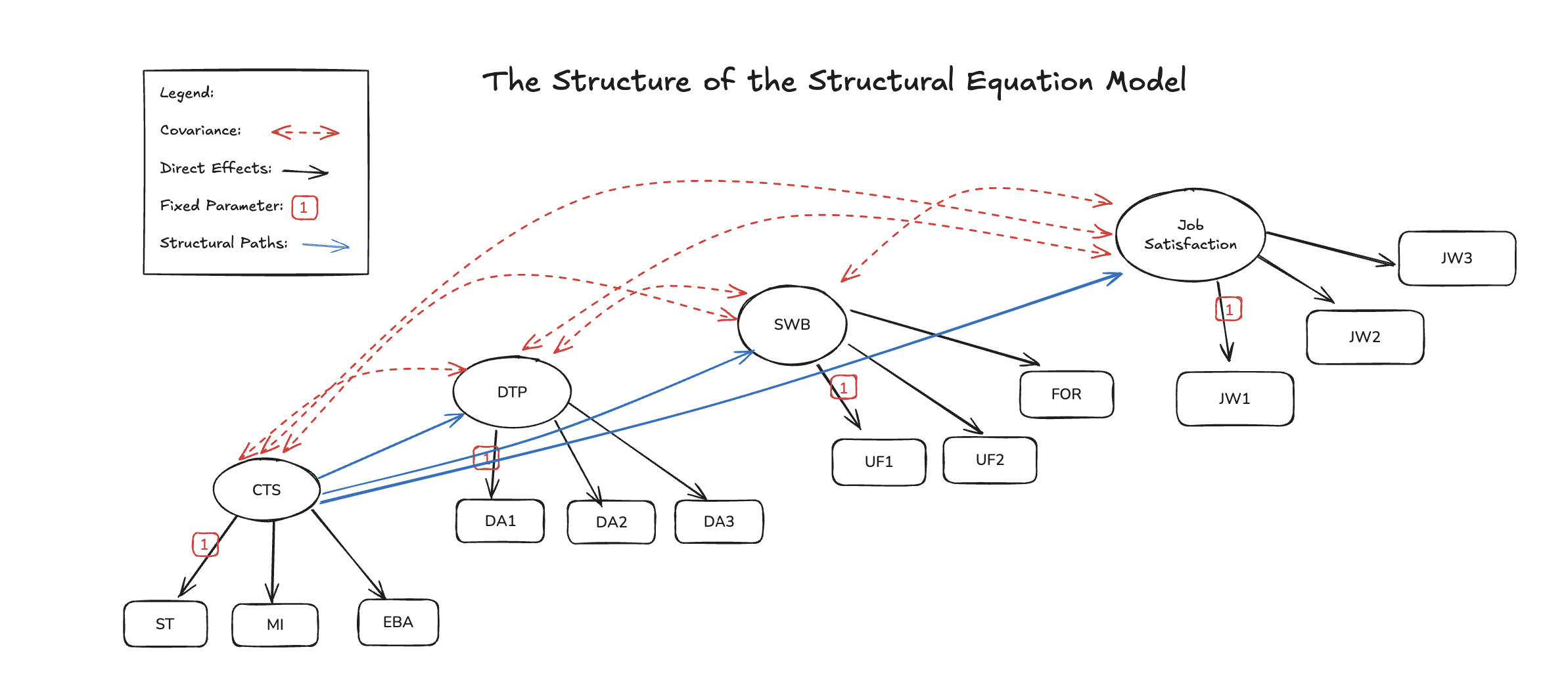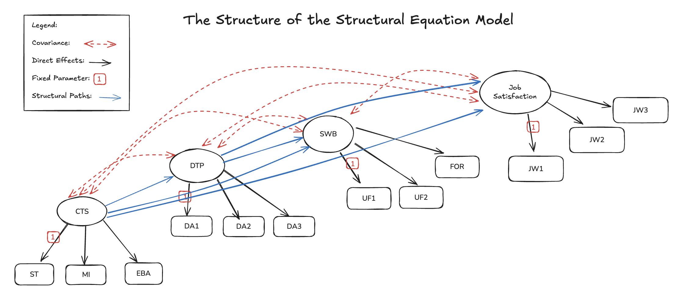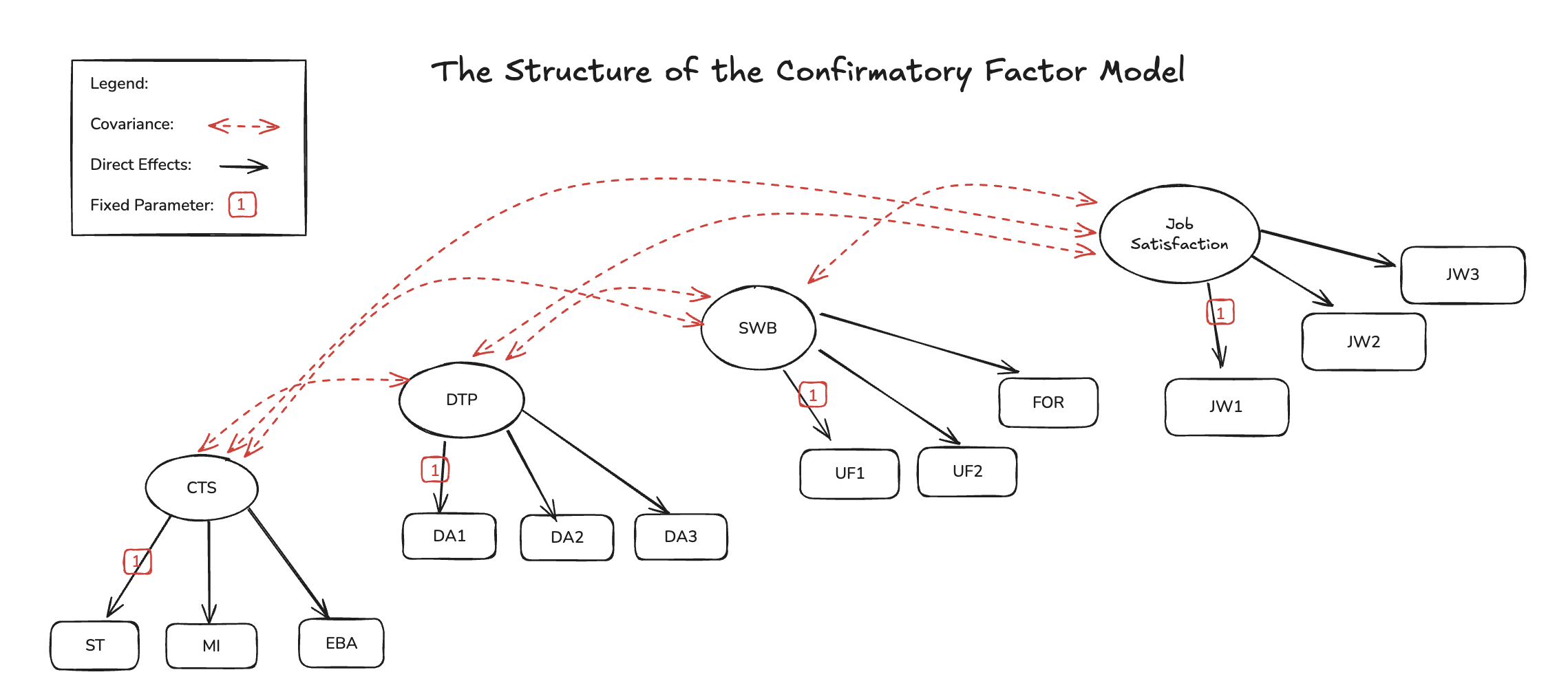 The measurement model is stable: adding the structural paths did not disrupt how the latent variables are measured.