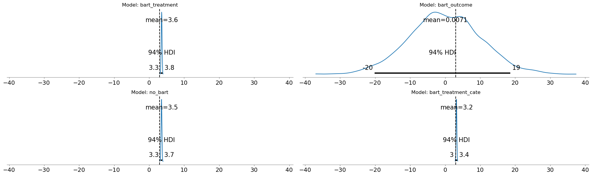 BART outcome model absorbs the structural distinction between treatment and other covariates, rendering the treatment effect surplus to purpose. The signal is swallowed by the noise-handler.