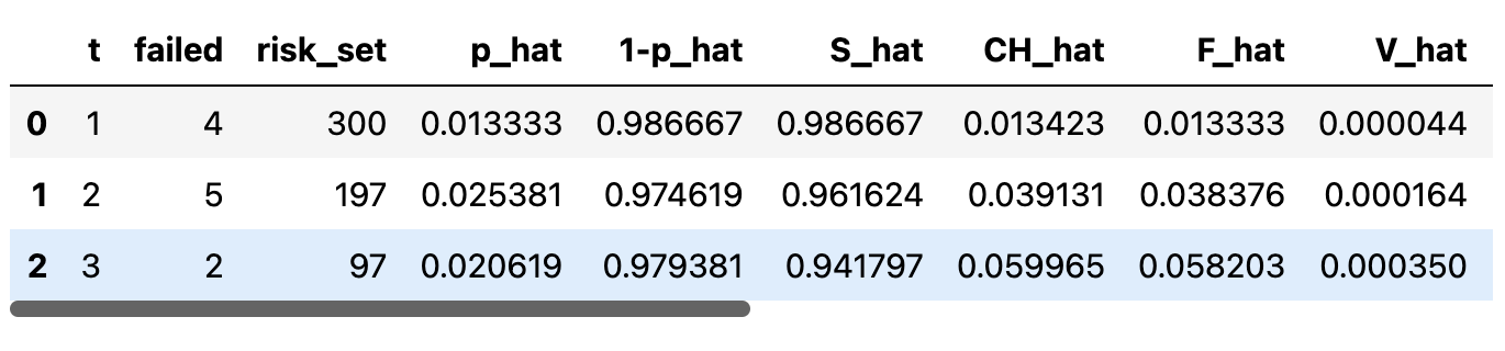 actuarial_table["CH_hat"] = -np.log(actuarial_table["S_hat"])